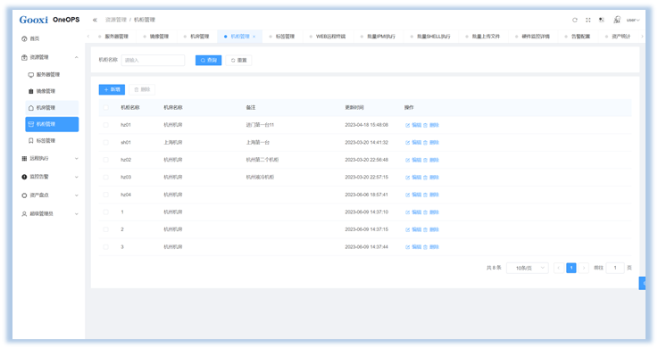 除此之外还可以让服务器集群管理变得更加简单:管理员角色定义能够细化管理权限加强管理规范标准化;远程一键登陆,批量上传下载功能满足各系统环境、业务环境的维护调优工作,提高业务效率;机柜可根据TAG定位、提高运维效率及辨识度,资产统计一目了然;镜像文件的管理让系统部署更加灵活、适用更复杂规模场景。